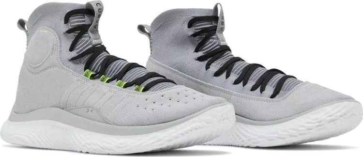 A parte superior em malha, couro e camurça do Curry 4 para o controle bloqueado + velocidade leve e aderente do UA Flow sem borracha. Essa combinação irrealista deixará seu defensor um passo atrás.