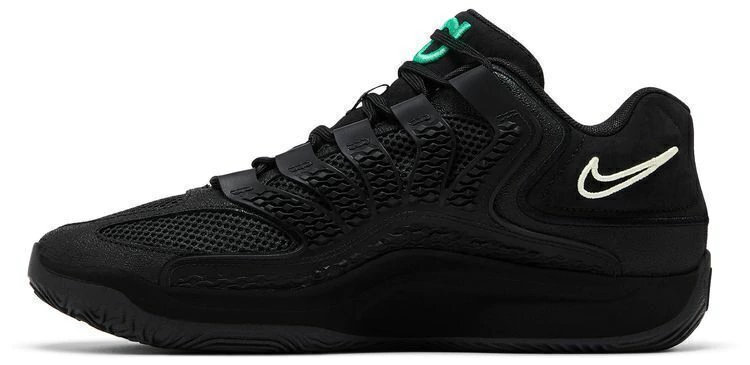 Limitado a 1988 pares, em homenagem ao ano de nascimento de Kevin Durant, o Nike KD 18 "Black Label Pack" estreia o décimo oitavo modelo exclusivo do atleta como parte de uma coleção de calçados que celebra o NBA All-Star Weekend de 2025. O cabedal em mesh preto é inspirado no Air Terra Humara e apresenta sobreposições onduladas no mediopé integradas ao sistema de cadarço. Um mini Swoosh bordado em off-white adorna a gola lateral, enquanto o logotipo esmeralda do KD adorna a língua.