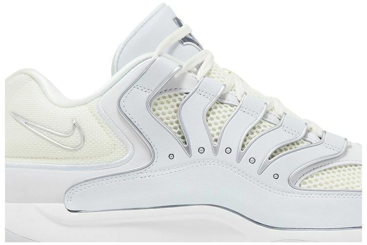 O Nike KD 18 "Soft Pearl" combina mesh de células abertas na cor creme com sobreposições de camurça sintética em Pure Platinum. Um acabamento cinza claro reveste a estrutura do mediopé, integrada ao sistema de cadarço e inspirada no tênis de corrida Terra Humara. Detalhes em prata metálica brilham no Swoosh exclusivo e no logotipo da KD na língua. Os benefícios de desempenho incluem uma entressola de espuma em toda a extensão, complementada pelo amortecimento Zoom Air na parte inferior do antepé e pela unidade Air Strobel no calcanhar.
