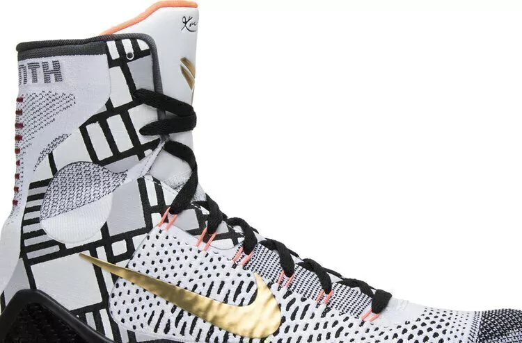 Eric Avar e Kobe Bryant se uniram para formar a primeira oferta de cano alto da série exclusiva de Kobe com a Nike. O Kobe 9 Elite apresenta Flyknit aplicado na parte superior, que apresenta um padrão em escala de cinza misturado com painéis de malha. Os cabos Flywire ao longo do ilhó promovem um ajuste firme, enquanto um logotipo dourado da Nike acentua o painel lateral. A entressola é composta por um sistema de amortecimento híbrido que combina as tecnologias Lunarlon e Zoom Air.
