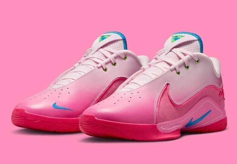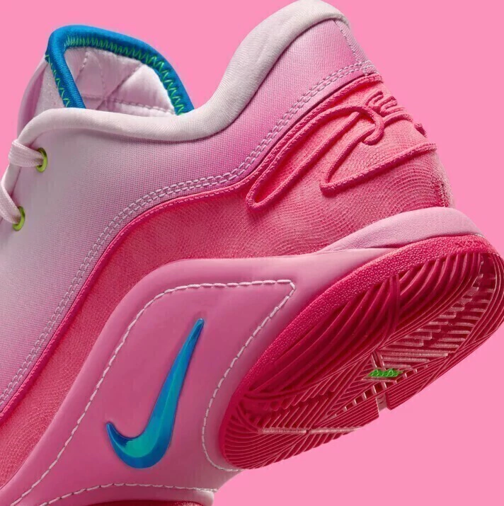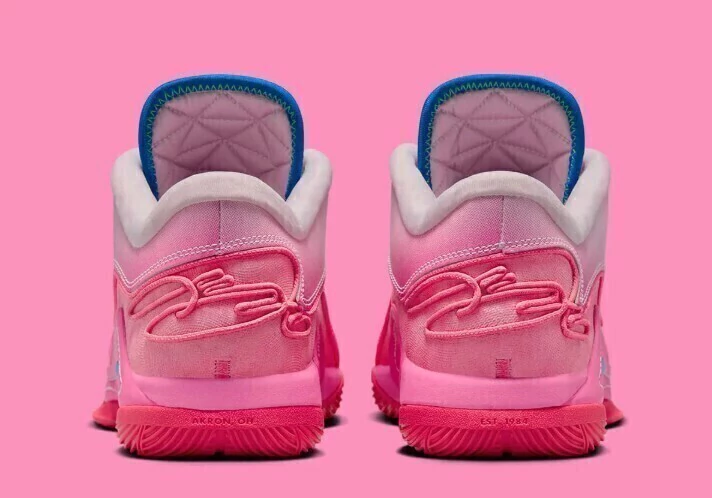 O Nike LeBron 22 'I Promise' leva o nome da escola primária de Akron, Ohio, financiada pela LeBron James Family Foundation. Um acabamento rosa degradê é aplicado ao cabedal sintético durável, com detalhes recortados que revelam uma base têxtil tonal. Um mini-Swoosh azul é bordado no dedo medial, enquanto um logotipo bordado de boné e beca no chassi do meio do pé faz referência ao tema educacional do tênis. O tênis é montado em uma entressola Cushlon leve com amortecimento Zoom Air no antepé e no calcanhar.