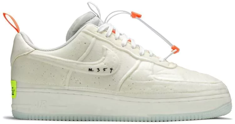 Para distinguir ainda mais o calçado do seu Air Force1 típico, o modelo incorpora abas de puxar na língua e no calcanhar, bem como um cordão, além de atacadores. O "Experimental Sail" também são devidamente marcadas com rótulos N. 354.