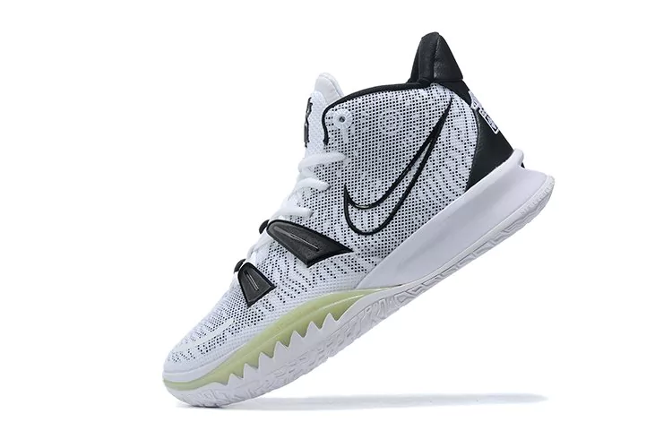 Feito para crianças grandes, o Nike Kyrie 7 GS ‘Hip-Hop’ homenageia o papel influente que o Brooklyn desempenhou na história da cultura rap. A homenagem é cimentada com um gráfico de boom box bordado no calcanhar, enquanto o esquema de cores branco e preto dá a homenagem aos Nets da cidade natal. O mid-top flutua em uma entressola de espuma resiliente, acentuada com um pop contrastante de verde menta no antepé lateral. A tração de 360 graus chega por meio de uma sola de borracha gerada por computador.