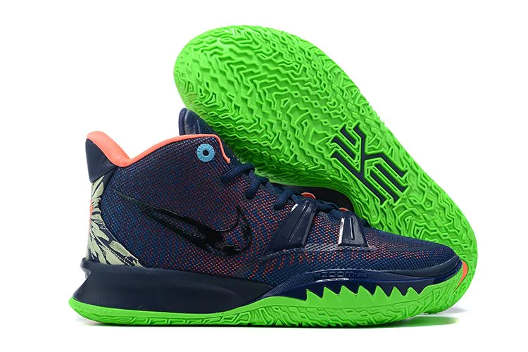 O Nike Kyrie 7 ‘Midnight Navy’ dá vida aos calçados esportivos de alto desempenho com cores vivas e gráficos dinâmicos. A construção em malha aberta do tênis revela tons contrastantes de vermelho e azul na base têxtil, enquanto o painel do calcanhar apresenta uma versão modificada do gráfico de olho que tudo vê de Kyrie Irving, rodeado por linhas fortes que irradiam para fora. Uma entressola Phylon, que abriga uma unidade Air Zoom Turbo do antepé, é protegida por uma sola de borracha verde fluorescente.