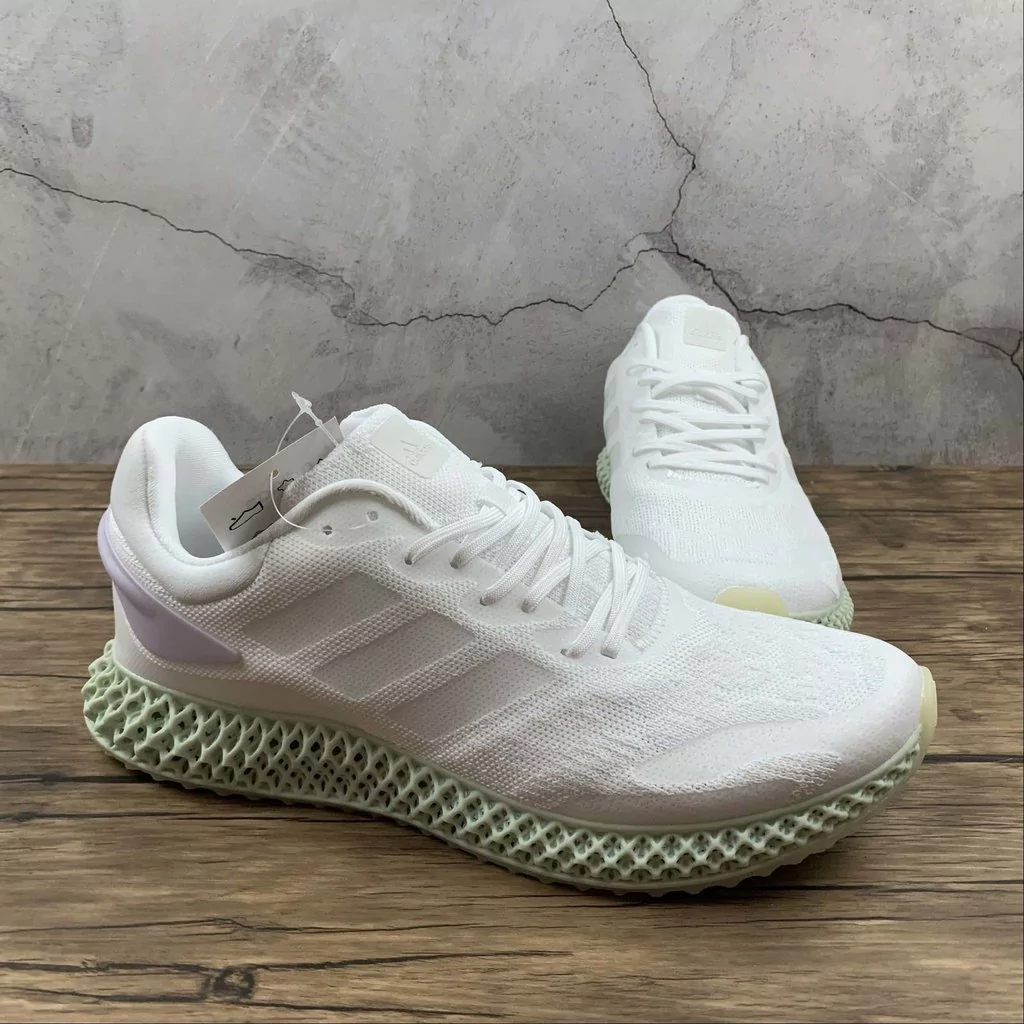 O Parley x adidas 4D Run 1.0 LTD ‘White Iridescent’ apresenta plástico marinho reciclado tecido na parte superior branca Primeknit. O design é inspirado nas cores de Miami, destacadas pelos detalhes iridescentes nas três listras exclusivas e no clipe externo do calcanhar. O corredor leve é apoiado pela inovadora entressola impressa em 3D da adidas, disposta em uma estrutura de treliça verde clara com base em dados de 17 anos de atletas.