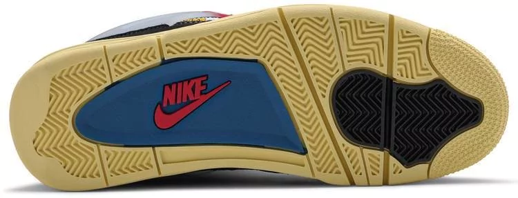 O Union LA x Air Jordan 4 Retro 'Off Noir' representa o esforço subsequente à colaboração altamente cobiçada da dupla com a Air Jordan 1 de 2018. O design atualizado apresenta uma parte superior de camurça preta com malha preta correspondente na caixa do dedo do pé e malha azul ao redor a coleira. As asas estruturais semitranslúcidas são presas a ilhós vermelhos moldados, combinando com a etiqueta Air Jordan tecida no topo da língua acolchoada e a marca Nike Air no calcanhar. As asas TPU são preenchidas, lembrando um esboço original de Tinker Hatfield do AJ4, enquanto a tag AIR JORDAN normalmente encontrada no interior da língua transmite uma aparência única, como se alguém dobrasse a língua para expor a etiqueta interna. Finalmente, uma etiqueta 'UN / LA' no painel lateral mostra a herança da União e uma entressola amarelada transmite uma estética vintage.