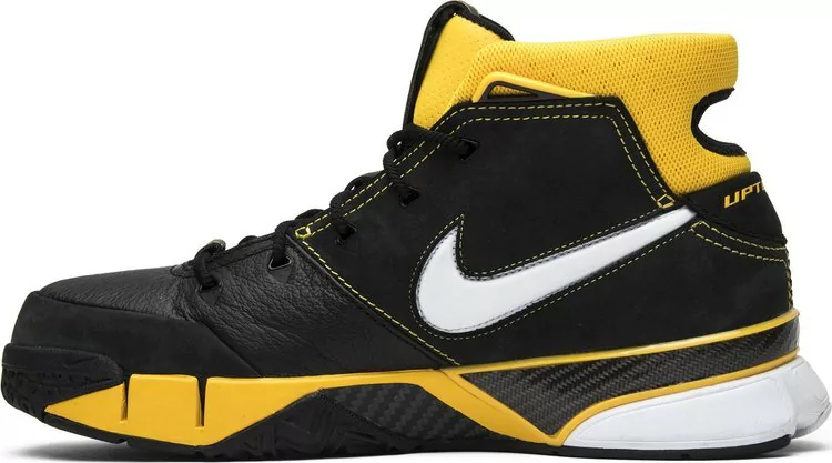 Nem todas as atualizações exigem alterações cosméticas ou de design. Às vezes, a tecnologia que melhora um sapato é exatamente onde o sapato precisa se reinventar. O Zoom Kobe 1 Protro 'Del Sol' replica o visual retrô do Kobe 1 de 1997, mas adiciona um toque moderno ao criar uma versão mais leve do modelo, mas com amortecimento aprimorado e um eixo menor de fibra de carbono. Este par apresenta uma parte superior de couro preto com um colarinho de malha Varsity Maize, um grande Swoosh branco e uma entressola Zoom de comprimento total.